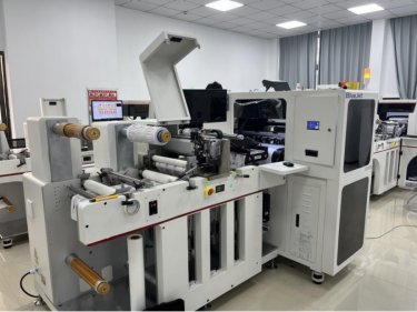 在传统标签生产流程中,物料需在印刷机、模切机、覆膜机等多台设备间进行多次转运与重新定位,每一次转运都会产生时间成本累积与物料损耗风险。例如,单批次物料在多设备间的转运时频繁切换设备导致成品损耗率高。而喷切一体智能标签机通过将印刷、模切、覆膜、分切等八大工序集成于同一设备系统,实现了从原料输入到成品输出的全流程无缝衔接,物料在非封闭环境内完成所有加工步骤,中途可变数据打印,单人即可操作节省人力成本,无需中间转运环节。